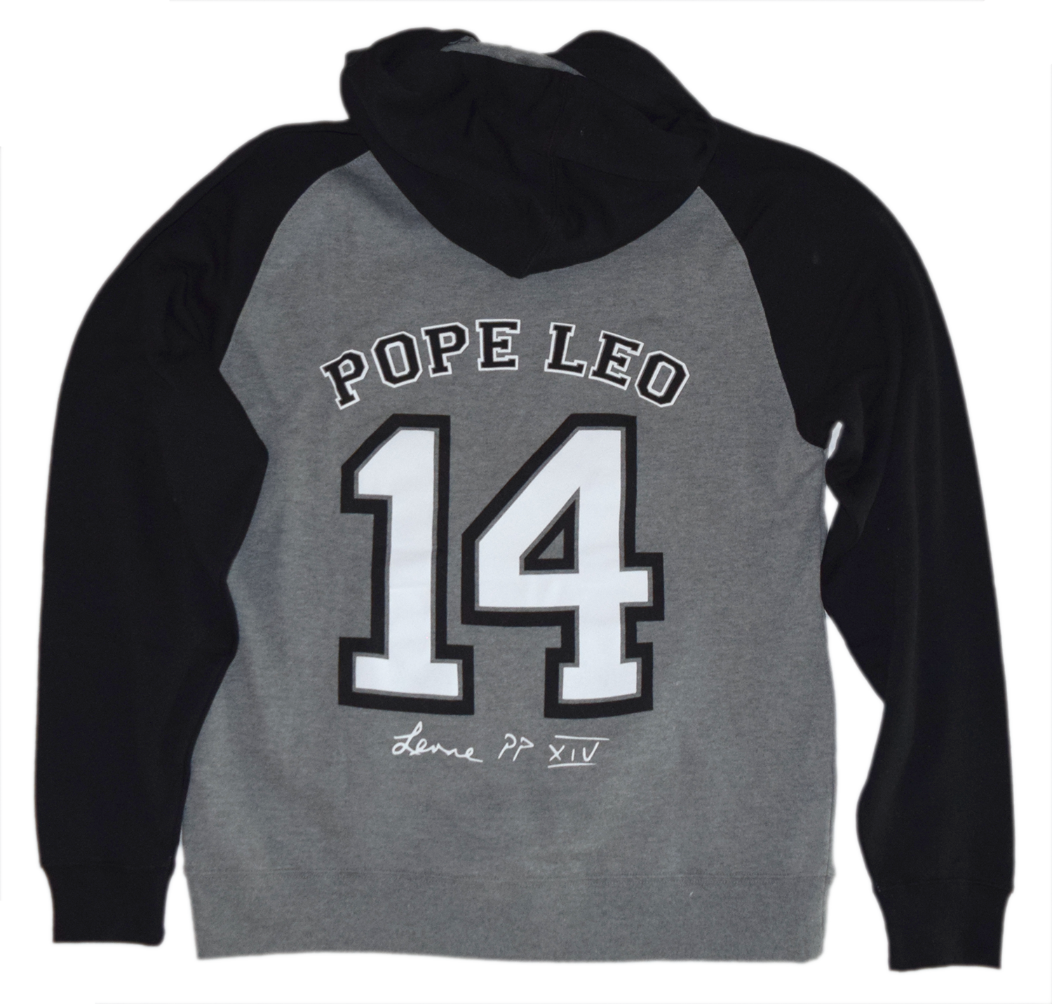 It's here! You asked, and we delivered! "Habeas Papem!" We have a Pope! Thank you, Lord, for the gift of the Papacy. May we always pray for our Holy Father that he would guide your Bride, The Church, with wisdom and charity. Pope Leo's Crest on the front with his motto: "In Illo uno unum," which translates to "In the One, we are one". On the back, our classic jersey-style back with his official signature. This special-edition Hoodie won't last long! And when they are sold out, they won't be back.